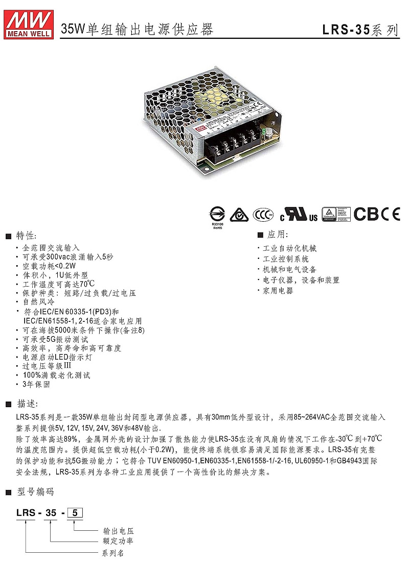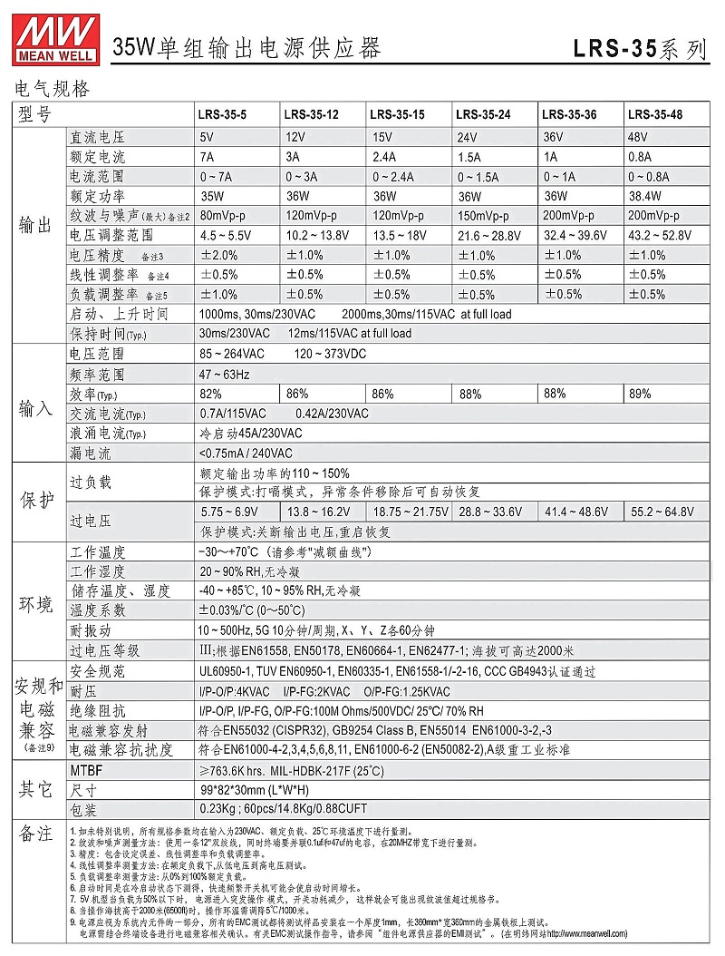 ******明緯電源LRS-35-36 35W直流36V開關電源 三年質(zhì)保